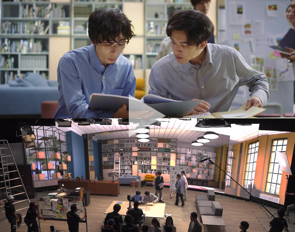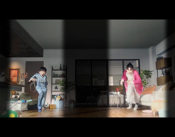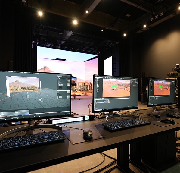 あらかじめ別撮りした実写背景をスタジオの大型LEDに投影することで、まるでロケ地で撮影しているかのようなスタジオ撮影を実現。LED映像の光を人物ライティングに利用するので、馴染みのいい映像に仕上がります。